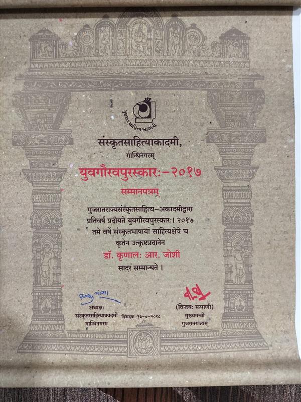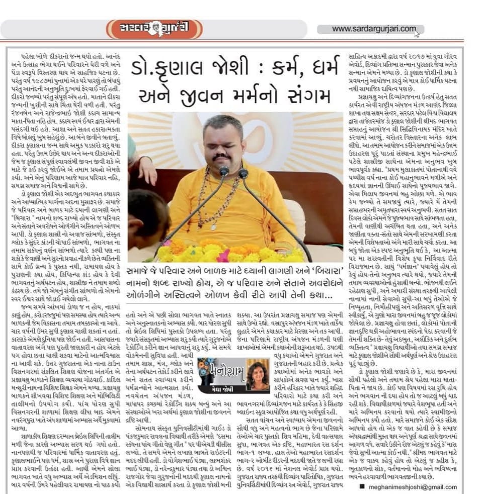 Mastery in art of Music (Sola Bhagwat Vidhyapith), Shri Vartantu-Sanskrit- Maha Vidhyapith, Presently the education for Upnishad (Mysitical/Philosophical knowledge) study is going on. He conducted his first Saptah of “Ramayan” at an early age of 12 years. He passed the first examination of “ Sangeet Visharad” and started playing Tabla and Harmonium. He has learnt by heart Ramayana, Mahabharat and Shrimad Bhagvat Geeta by listening cassettes. He conducted his first Saptah of “Ramayan” at an early age of 12 years at Ramji Temple, Ranip, Ahmedabad."